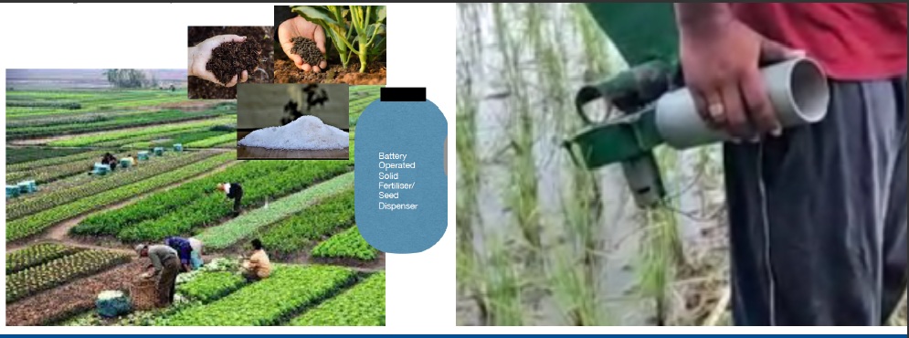 Our product, KRISHI DHANU is a smart system controlled and run on battery charged with solar energy. It can be programmed and regulated based on the type of the fertilizer to be used and also the type of the crop or vegetable/fruit farming. Hence it would not use any fossil fuel or grid electricity to run. Again, this is a portable device that can be easily carried on at the backs by the farmers. This arrangement would help optimize the distribution process of solid form of fertilizers to enhance the possibility of a good harvest in terms of both quantity and quality of the agriculture production.